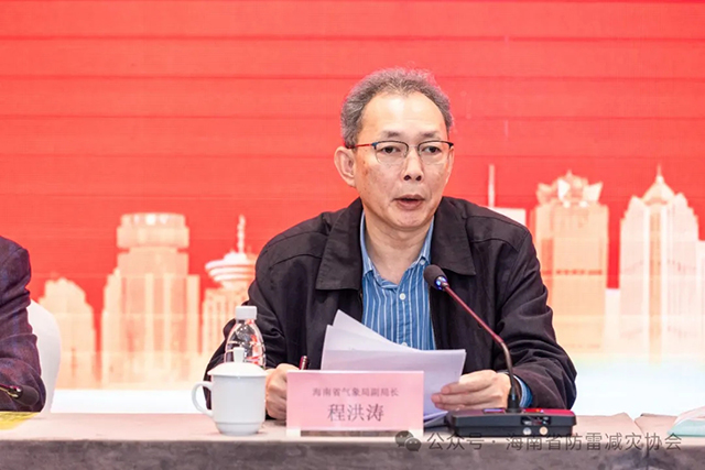 大會在莊嚴的國歌聲中拉開帷幕,隨后,海南省氣象局副局長程洪濤為大會致辭。他充分肯定了過去一年協會的工作成果與政企橋梁作用,同時對協會提出更高要求:2025年,協會要在行業自律、質量考核、技術培訓、市場拓展中發揮更大作用,助力海南打造全國防雷減災事業高質量發展的“示范樣板”。