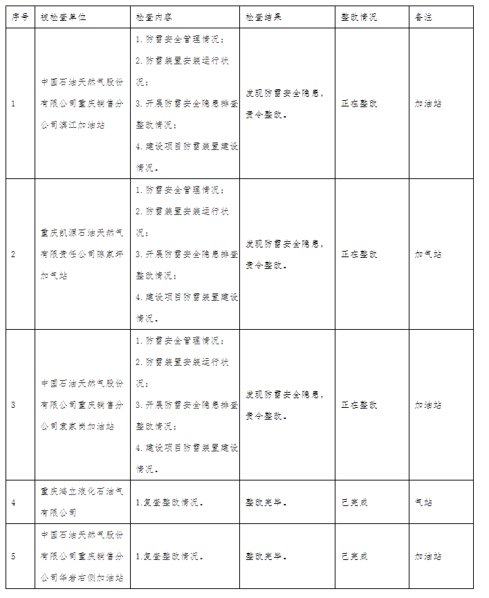 按照“雙隨機(jī)、一公開(kāi)”要求,2023年5月我局共對(duì)33家防雷安全重點(diǎn)單位、3家雷電防護(hù)裝置檢測(cè)資質(zhì)單位進(jìn)行了隨機(jī)檢查,共排查事故隱患和違規(guī)行為34處,發(fā)出整改通知書(shū)3份,對(duì)2家單位進(jìn)行了整改復(fù)查。現(xiàn)將有關(guān)情況公告如下: