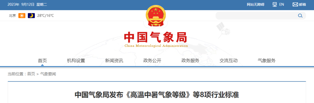 2023年9月5日,中國(guó)氣象局批準(zhǔn)《高溫中暑氣象等級(jí)》等8項(xiàng)氣象行業(yè)標(biāo)準(zhǔn)發(fā)布。本批標(biāo)準(zhǔn)是今年發(fā)布的第二批,涉及觀測(cè)、數(shù)據(jù)、氣候可行性論證、防雷等領(lǐng)域,將于2023年12月1日實(shí)施,詳見(jiàn)下表。