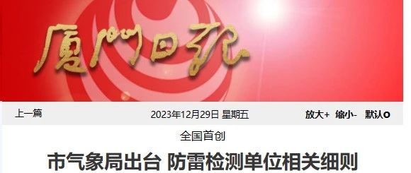 日前,廈門市氣象局率先全國出臺雷電防護裝置檢測單位安全生產標準化細則,將安全生產標準化建設要求融入修訂后的雷電防護裝置檢測單位名錄庫管理辦法,通過達標入庫單位差異化監管等優惠政策,提升安全監督管理效能,強化安全責任落實,助力建設良好市場環境。