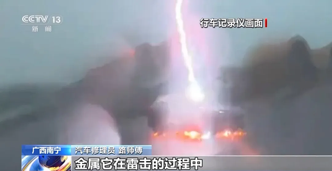 廣西南寧汽車修理員 路師傅:因為車外殼大部分是金屬的,金屬在雷擊的過程中,是形成一個等電勢的車殼,也叫法拉第籠,大電流經過車殼可以直接導到地上。