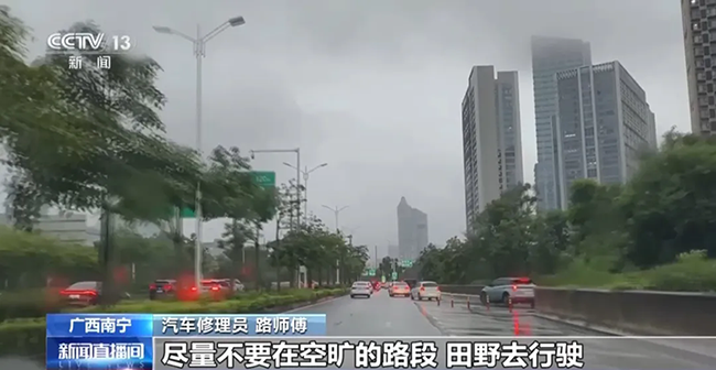 廣西南寧汽車修理員 路師傅:盡量不要在空曠的路段、田野去行駛。停車避雨時,不要把車停在電線桿、樹下或者高樓的墻角下,這些位置都有引雷的風險。避雷的時候,所有的車窗應關閉,在車上盡量不要使用電器。高速上碰見打雷這種情況應就近進入服務區。