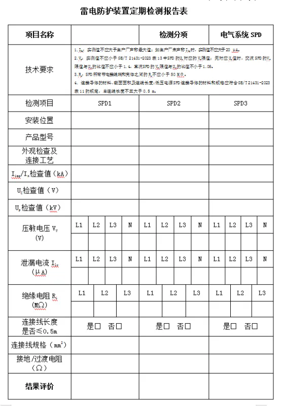 為了避免發(fā)生上述問題,要求嚴(yán)格按照設(shè)備耐壓等級(jí)和線路位置(LPZ0-1, LPZ1-2等)選型并考慮能量配合;安裝位置準(zhǔn)確(盡量靠近被保護(hù)設(shè)備入口);選用帶狀態(tài)指示/遙信功能的SPD;建立SPD巡檢更換制度;嚴(yán)格核查SPD接地線規(guī)格并可靠連接;必須安裝合格的后備保護(hù)裝置。要對(duì)電源SPD定期進(jìn)行檢測(cè)。